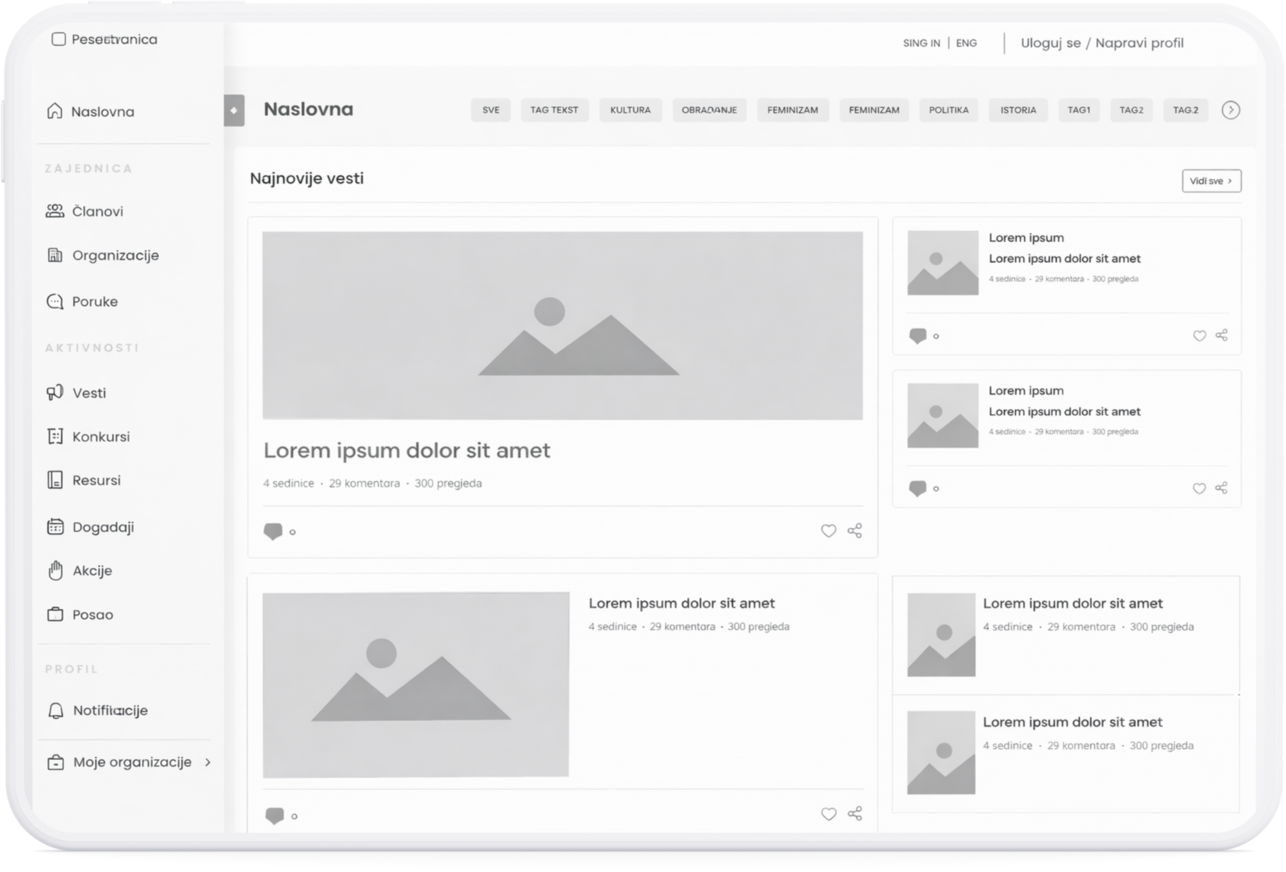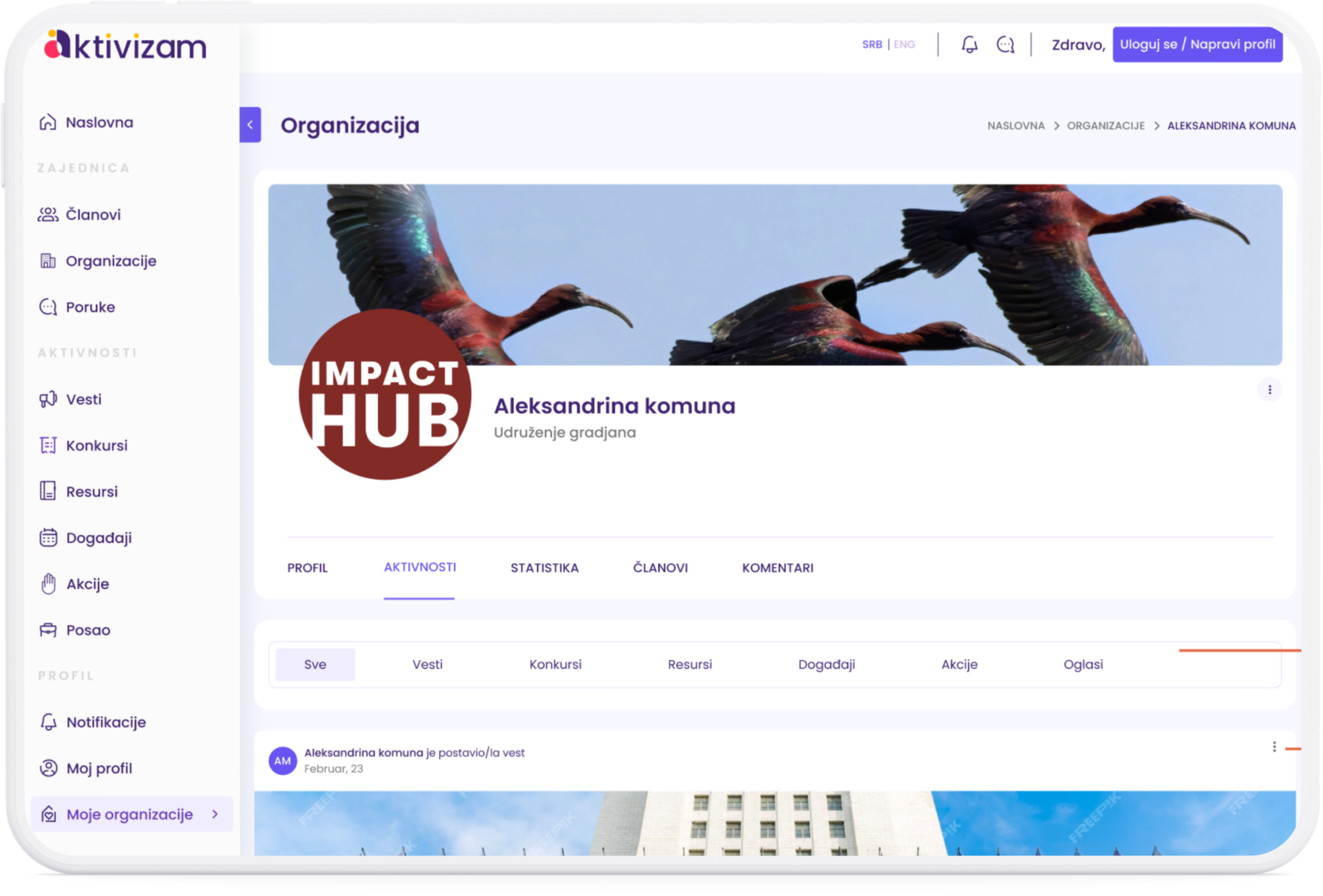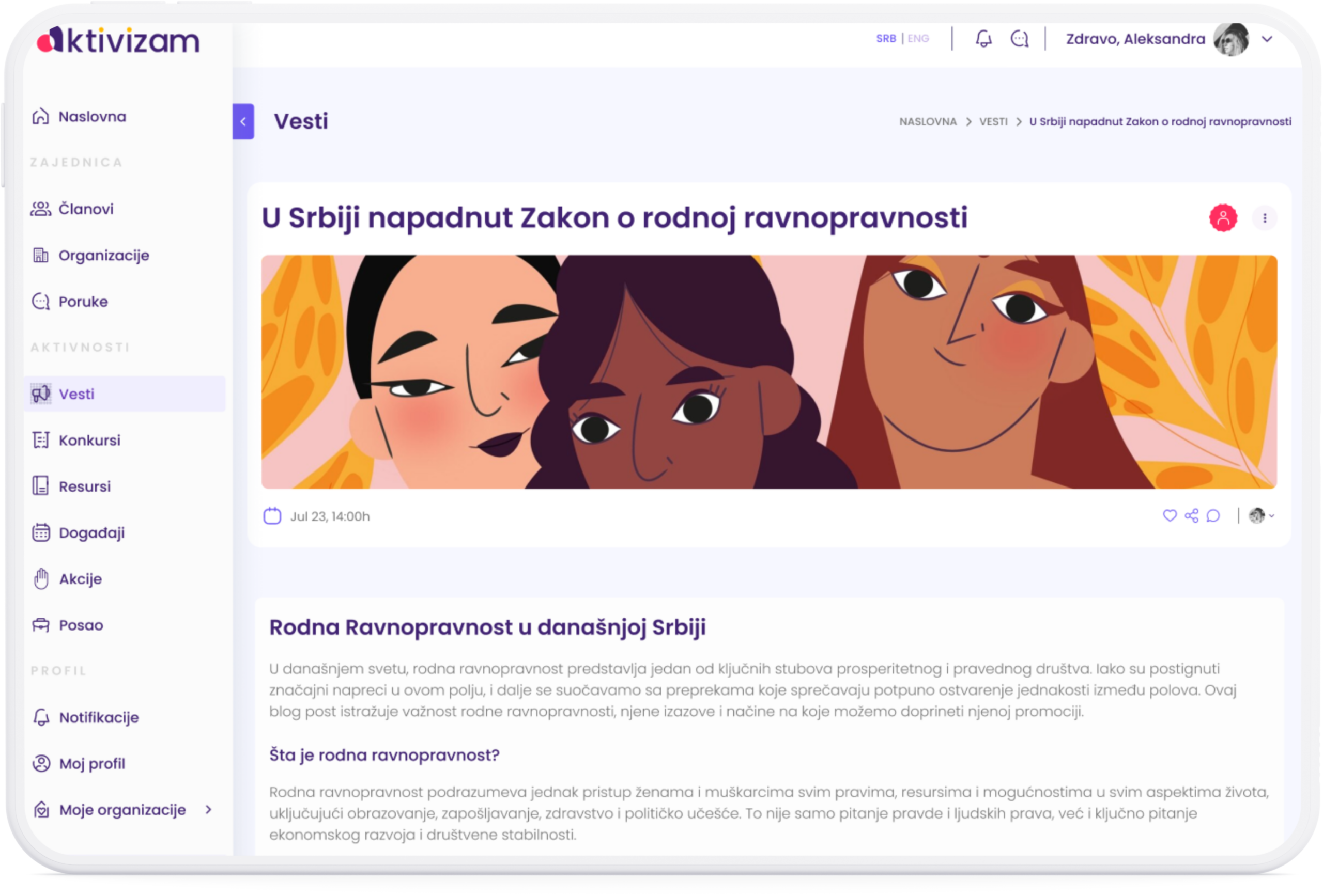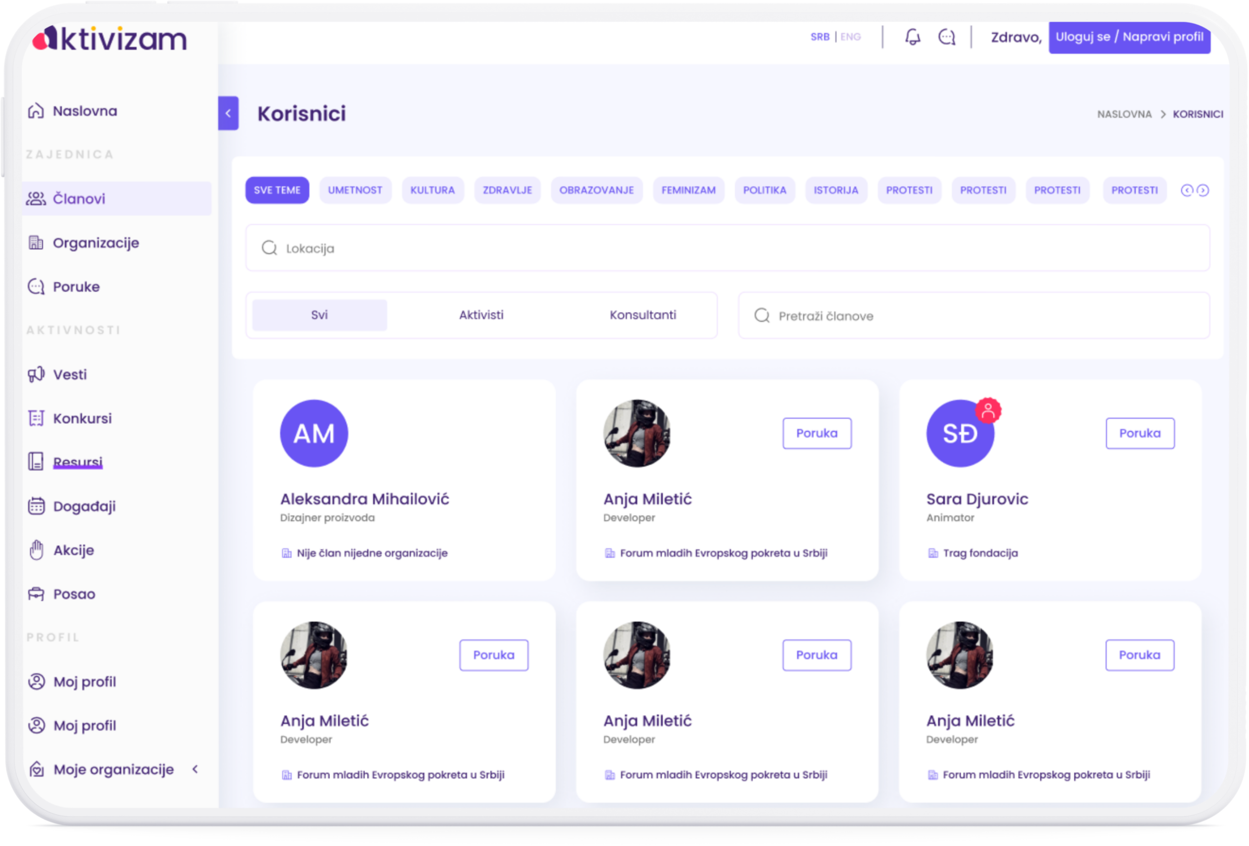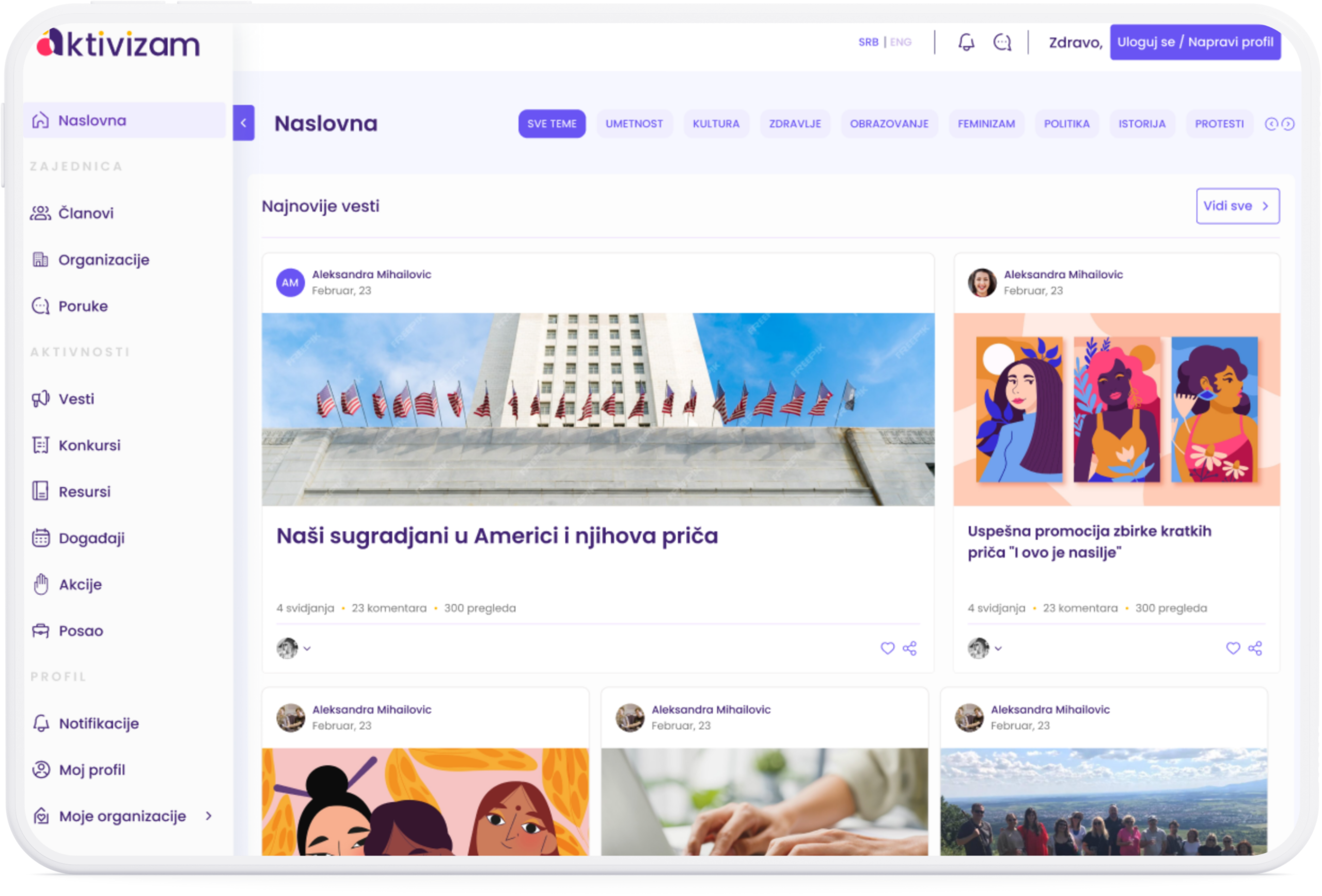 Aktivizam Akcelerator is a responsive web platform designed to centralize information, resources, and collaboration tools for civil society organizations and activists in Serbia.